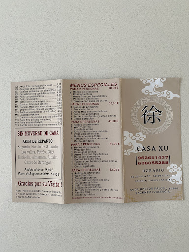Read moreComida muy rica. Tiene buenos precios. Normalmente pido para llevar o llamo para que me lo traigan a casa, por lo que mi opinión la doy respecto a esto. Traen la comida muy rápido a casa. Permiten pagar con tarjeta. Y los combos que ofrecen están muy bien, traen buenas porciones y el precio es muy accesible. El monto mínimo para envío en casa es de 13 € para cercanías en Sagunto. Y de 17€ para...