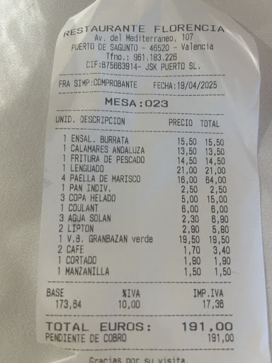 Read moreFuimos recomendado por unos amigos y fue todo un acierto. Fuimos tres comensales y pedimos unas bravas con unas cervecitas , paella de marisco para dos y la tercera persona ( mi mamá) pidió el menú del día. La paella estaba exquisita y el menú tenía para elegir varios primeros y segundos (buena cantidad de comida en los platos de menú) . Mi madre es diabética y pidió una ensalada tropical como primero . Yo le dije, que ese tipo de ensalada suele ser dulce , pero le importó un pimiento y tampoco pregunto al personal del restaurante , que por cierto , fueron muy atentos en todo momento. Después de probarla , dijo que era dulce y ella no podía tomar esas cosas ( mi madre es así ). Le ofrecieron otro plato y el anterior no quisieron cobrarlo . Como invitaba mi mamá , le aconsejé dejar una buena propina por el detalle de no cobrarnos el plato , pero conociendo a mi madre como la conozco , no pondría la mano en el fuego por su generosidad . Por cierto , mi mamá tiene 78 años y jamás de los jamases me dio asignación semanal . En fin , si os apetece comer bien , sobre todo arroces ya tenéis un...