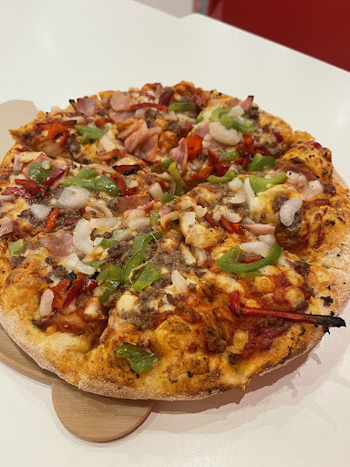 La peor pizza que me he comido jamás. La pizza estaba babosa y olía fatal. El pimiento verde que llevaba estaba poco hecho por no decir casi crudo y eso tiene mala digestión. La mozarela tenía un regusto que me ha repetido varios días, solo de pensarlo me dan arcadas. El local nuevo, pero sucio la taza del wc tenía diarrea y la papelara desbordada de compresas y pañales con fuerte olor a heces de bebe ...Los trabajadores antipáticos y prepotoentes, cuando les comenté que por favor me cambiaran la pizza me dijeron que debía pagarla también. Solo puedo decir que el precio de la carta lo repetan. Les aboné el importe de todo lo que pedimos y no comimos y nos fuimos a cenar a otro...
