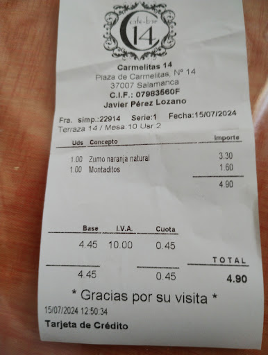 Poco después pedimos la cuenta para pagar con tarjeta. Cuando pago y echo un ojo a la cuenta me doy cuenta que nos han cobrado una tapa más. Nos cobran 5 tapas en lugar de las 4 que se habían pedido.