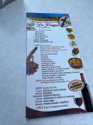 La Fragua is a neat little cafe & tapas bar situated along Calle Felipe Espino. Opening hours are 8.30am to 4pm &. 7pm until 12.30am daily. There is a small indoor seating area as well as a fair number of outdoor seats. Menu is Spanish only, staff worked hard and fast on the evening. Drinks and tapas orders were served quickly, prices very reasonable.