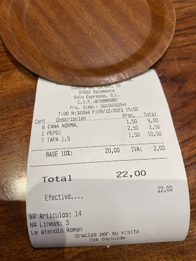 Read moreAyer, 18 de septiembre de 2025, fueron mis padres a las 15,15 h a tomar un café. La camarera, una chica joven morena, increpó a mi padre porque se le cayó parte del azúcar en la barra diciéndole que si él lo tiraba ella lo tenía que limpiar (mi padre tiene 78 años). Mi padre le respondió que la forma en la que se había dirigido a él no era la correcta. Entonces ella siguió dirigiéndose a él de malas maneras por lo que pidieron el libro de reclamaciones. Ella contestó que no era obligatorio y que si quería ir a consumo le acompañaba ella misma. Mi madre intentó mediar y hacerle verle que no eran formas de dirigirse a nadie a lo que la camarera le respondió que no fuese dando lecciones de vida. En ese momento también había otro señor trabajando, pero no era el dueño. Por supuesto, hemos dado parte a Consumo, y esperamos que esta reseña y la reclamación sirvan para que el propietario del bar sepa cómo son sus...