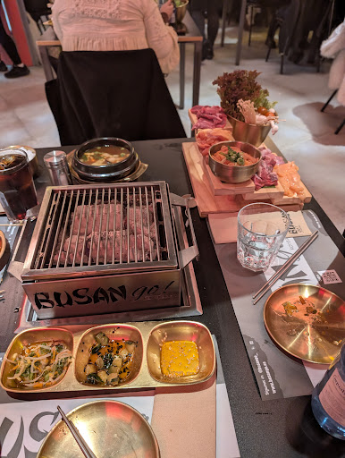 Restaurante coreano en pleno centro de Salamanca. La comida se centra en la barbacoa (te ponen una parrilla de carbón en medio de la mesa con un extractor para que te hagas la comida tú mismo), por lo que si tienes acceso a una barbacoa en tu casa no merece mucho ir. Además los pocos platos que hay que no son de barbacoa (principalmente los entrantes) son pequeños (poco más que un puño) y no son gran cosa. De los que pedimos dejamos la mitad. Te ponen unos miniplatos para comer. Por lo que si quieres compartir la comida vas a tener problemas. Recomiendo pedir varios platos y boles para comer más cómodo. Espero que con el tiempo las camareras vayan mejorando, se nota que no tienen experiencia. Si les preguntabas no sabían y se equivocaban con los pedidos. Menos mal que te repetían las cosas porque le pides una cocacola y apuntaban un agua... Al menos intentan ser amables, te preguntan todo el rato si está todo bien o necesitas algo (igual hasta demasiado, en 10 minutos nos preguntaron 4 veces, las 4 camareras que había). No entiendo porqué mezclan sillas con taburetes, estos últimos son incómodos. Espero que sea porque lo acaban de abrir y aun no tienen todas las sillas porque estar 2h sentado en un taburete... El local no está adaptado para grupos. Las cada mesa tiene una barbacoa y un extractor fijo encima, por lo que si vais bastantes, tendrán que poner una mesa adicional que no tendrá extractor, por lo que esa se queda sin barbacoa. Y con una minibarbacoa no da para tanta gente, vais a estar más rato esperando que comiendo. En cuanto al precio, sí que es mayor que en otros sitios, pero nada exagerado como ponen en otros comentarios. Por persona saldrás entre 25-30€. Los postres (que es lo más barato) no son nada del otro mundo. Los mochis por ejemplo (que vienen 5) son los mismos que puedes comprar en un supermercado oriental. Cuando digo los mismos es que son la misma marca. En resumen. Igual por la experiencia de probarlo se puede ir una vez, pero no es un sitio...