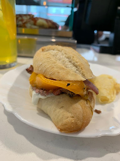 Me encanta, no me puedo quejar de nada por los momentos, cada vez q puedo voy con mi esposo..pero algo quiero sumar a que no me quejo de nada... Es... LOS FELICITO, he ido al servicio y desde que uno baja las escaleras, huele impecable, es algo q a mí como clienta, me encanta. Se nota la higiene, la pulcritud y más en un sitio donde se venda comida, eso me gusta y me da seguridad de que si solo así huele el baño...así tienen la cocina donde preparan esos ricos alimentos que llevo a mi organismo. Es algo que veo en cualquier bar, y bar q consigo un baño sucio...bar q no vuelvo a pisar. La verdad ése día provocaba era quedarse un buen rato en el baño de damas y disfrutar de esa fragancia de detergente que habían colocado. Dentro donde está el váter, guao...la verdad es que parecía más bien nuevo, porque hasta olor de pintura en las paredes afuera tenía, xq está completo de loza, pero entraba el olor de recién pintado en alguna parte del local. Estoy operada, dicha operación aparte de poder comer limitado, me dejó el olfato y paladar más sensible que otros, con el cual noto tres veces más que otros las cosas. Y aquí he quedado fascinada.. ahh, otra cosa en muchos sitios me molesta que piensan que es obligatorio comer y beber algo y aquí he tenido esa tranquilidad, como dije estoy operada sin un 80% de mi estómago, no puedo comer y beber a la vez, a menos q beba algo poco antes de meter sólido siempre y cuando tenga sed...pero no me han mirado raro cuando solo pido la tapa sin nada de bebida, ni cafés. Y es agradable que no pongan caras extrañas, q respeten ése detalle en los clientes, que cuando se pide algo, es el deseo o la posibilidad de la persona que allí entra. Lo he recomendado a él que me pregunta siempre dónde comer cuando está por esa zona...a ojo cerrado. Y por favor el punto del aseo y el rico olor en los servicios, no lo pierdan...no saben cómo se agradece esa higiene y el buen aroma en un sitio donde se manipulan alimentos, porque podrán tener la mejor sazón, pero si hay desaseo...muchos no vamos!!! Y recomiendo la tortilla de patatas, con pollo y cebolla caramelizada...guao...deben dar la receta jajaja...demasiado rica, q rico sabor deja en mi paladar es lo que siempre pido, aunque antes de mi operación pedía más cosas por tener espacio...pero ahora por lo poco, quiero disfrutar solo de esa tortilla jejeje..pero hay variedad y dicha variedad no es la típica de otros bares, q siempre solo croquetas, montaditos simples...nooo, aquí todo es exquisito y variado xq no son los típicos pinchos o tapas q se ven en otros sitios que aburren..aquí todo es...