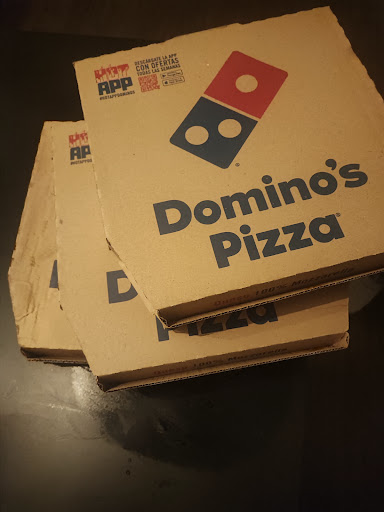 Read moreDe los peores Dominos Pizza que he ido , pedimos come y bebe para 2 personas , la primera pizza todo bien , la segunda ya regular : la traen mitad jamon y queso mitad solo queso , un error al ticarla bueno pedimos otra ; mientras tanto son las 22:30 de la noche y ya estan haciendo el cierre , fregando la sala y limpiando con productos de limpieza que huelen , nos abren la puerta que teniamos al lado de par en par para limpiarla y nos entra el frio obviamente . La ultima pizza de masa pan , estaba horrible se nota que la habian sacado antes de tiempo del horno , estaba medio cruda . Parece que molestas que como pidas mas de 3 pizzas te las hacen mal a proposito para que te vayas ... la hosteleria es dura pero precisamente dominos tiene buenos horarios y si el local cierra a las 24:00 los empleados suelen tener horario hasta las 24:30 o 01:00 para hacer el cierre , no es necesario que me estes barriendo los pies a las 22:30 de la noche para adelantar ....