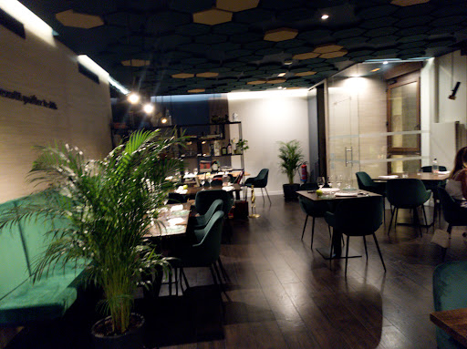 Read moreRestaurante de comida "pija" en una localización excepcional, justo delante de la catedral vieja. Cuando pongo pija me refiero a que es de estas que están tan de moda que en algunos sitios llaman gastro-fusión. Poca cantidad pero mezcla de muchas cosas diferentes jugando con texturas, mezclas y sabores. Ya sabes que va a salir caro, pero me sorprendió porque fue más económico de lo que esperaba. Tiene una terraza bastante cómoda, el local es más pequeño y la decoración es un poco "rara" (todas las mesas comentaban lo mismo), mezclan azulejos de un baño, con mesas modernas y estanterías con cosas clásicas. Se come directamente en la mesa (no hay mantel), para apoyar los cubiertos te dejan unas piezas tipo japonesas, pero el pan lo tienes que poner directamente en la mesa, como digo siempre que me hacen algo parecido en un restaurante, no está de más poner un platito para el pan, la mesa no deja de ser de madera (material poroso) y por mucho que limpie no deja de ser del todo higiénico. Respecto a la comida fuimos a menú degustación. Pequeños platos con muestra de algunas cosas que se pueden pedir. La verdad es que estaba todo muy bueno, incluso si hay algo que no te gusta, como se mezcla con otras cosas tapa el sabor y se puede comer perfectamente. Eso sí, quejarme del pescado. Una pieza pequeña de unos 3cm de lado me encontré con 5 espinas, yo me esperaría que un restaurante de este tipo cuidara un poco más esos detalles e intentaran quitarlos (que puede quedar alguno, pero no tanto en tan poco trozo). Gran carta de vinos y diferentes bebidas. Casi...