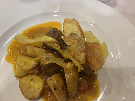 Para compartir pedimos un jamón ibérico que estaba espectacular, acompañado de un pan caliente recién horneado y unas croquetas realmente deliciosas. Todos coincidimos en que eran de las croquetas más sabrosas que habíamos probado en la vida, jugosas, caseras y con un toque a receta de la abuela que nos recordó nuestra infancia.