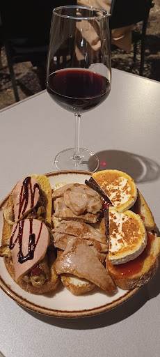 Excellent tapas and wine, fantastic location, and a sunny terrace next to an ancient church. Unless you fancy something in particular, ask for the platter with various toasts "surtido de tostas" and for 18€ for 10 toasts, you'll get a few different ones to try, all of them delicious. Staff was quick and attentive. Prices are slightly above average, but so are quality and service. The sunny terrace without nearby traffic on a Sunday noon was my favourite thing about it. It was crowded though, you may have...