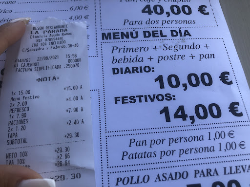 Read moreProbé las chuletas de pierna de cordero y estaban muy ricas. Patatas fritas cortadas y no congeladas. Una ensalada mixta un poco aguada. Por 9€ el plato de chuletas y patatas y 3€ por la ensalada para dos la verdad es que no se puede exigir más. Es un mesón màs enfocado a menú del día, o menú obrero, pero no cocinan mal. Y soy consciente de que hay q hacer muchos números para sacar un margen de beneficio de estos precios. Lo recomiendo. El servicio de la camarera muy correcto...aunque no puedo decir lo mismo de los dueños discutiendo en alto entre ello y presencié como el dueño le echaba una bronca a la camarera por no poner botellas de vino de ribera en la nevera....eso no se hace en público a menos q se pretenda humillar a...