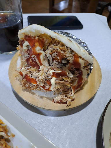 Read moreQue acierto! es un local muy grande por lo que no hace falta reservar. Nunca había probado la comida colombiana pero el que haya colombianos comiendo allí indica que la comida es buena. Tomamos patatas hawaianas que estaban espectaculares! arepa de la casa que es enorme y arepa con queso buenísimas!! para dos personas he de decir que es demasiado, salimos llenísimos!! La comida me encantó, el local es agradable y el dueño es bien majo, recomendable!! volveremos seguro!! (la foto de la arepa con queso la hice ya a mitad 🙃)