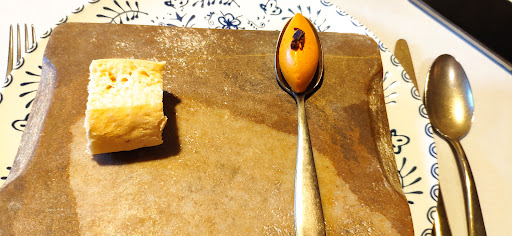 Moving on, hubby’s lamb is billed as “suckling” a term used for young pork, but I can tell it’s just belly, or breast as this cut gets called when used in lamb, it’s excellent, once the excess fat is discarded. Meanwhile I’m on vermin - not exactly, but my pigeon is fabulous, two almost raw (as they should be) breasts, two legs and, the unusual bit, two wings. Normally I’m not a wing-man, but the bicep part (if it were human) is slightly crispy and really tasty. Served on risotto flavoured with cocoa it’s an excellent dish too.