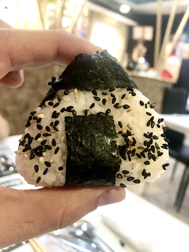 Oniguiri de ume 🍙: se trata de un triángulo de arroz relleno de ume, una ciruela japonesa ácida y salada, y envuelta en alga. Es un plato que probaba por primera vez y que no me gustó en lo absoluto ❌ el ume era muy potente y se llevaba todo el sabor, y tenía un gusto que no me convenció. Quizá con la opción del salmón o del atún 🐟 me hubiese gustado más. El arroz además estaba muy apelmazado y compacto. No lo volvería a pedir 🔴