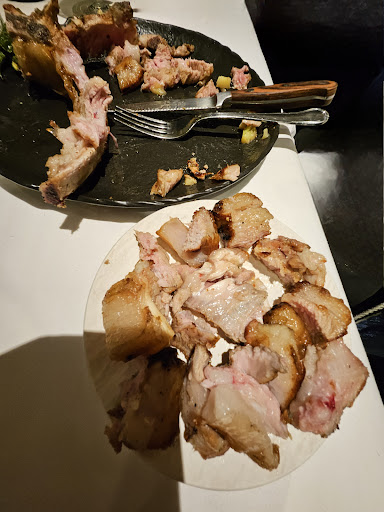 We experienced one of our worst meals in Spain. For an expensive 5 star restaurant, both the food and service were very poor. Having relied on the menu English translation "T-bone steak", under the Spanish title chuleta de ternera, we received white meat probably veal, but at least half was not able to eat due to extensive fat. The photo shows some of the fat that had to be cut off together with a lot of sinew leaving only half of the meat to eat. It was also under cooked even though we sent it back once. Proper translation showed the meat was veal which is surprising given veal is normally lean, not fatty. Clearly it was a very poor quality meat and certainly not T-bone steak red meat. Having complained to the waiter twice, he had no interest at all. We asked to speak to the manager who was very aggressive, rude and threatened to call the police even though we showed him the photo. We therefore reluctantly paid the full bill and left. A very disappointing evening. We visit Spain regularly and this was the...