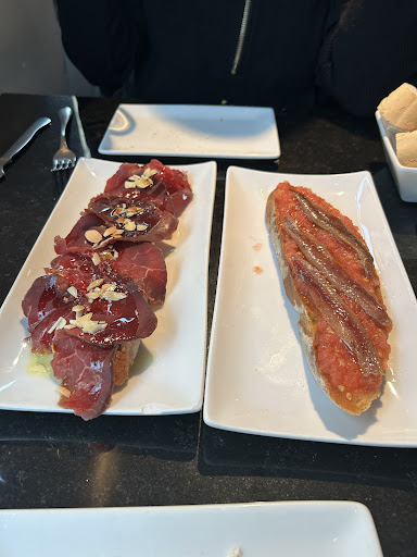 Read moreWe had one night in Salamanca,such a beautiful city,and chose here for dinner.It,s important to book as it,s very busy,but if you arrive at opening time you may get a table.We had toastada to start,tomato y anchoa,and a morcilla matachana i think,both delicious.We had the chicken skewers and secreto de cerdo ibérico,with papas arrugadas,spicy potatos,absolutely delicious,and very good prices,for such good food.Shared a cheese board,a great selección of cheeses,and each cheese was explained of it,s región and type,with a nice bottle of Ribero del duero Red wine.Our waitress was so friendly,all the staff are excellent,will be back on our next trip to...