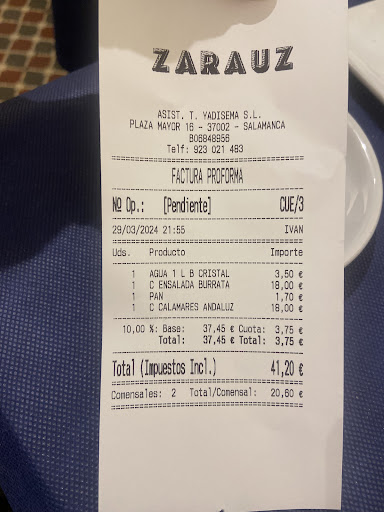 Read moreIf I could give this restaurant negative ratings I would. They served my family 3 raw turbots even though they were supposed to be pan fried. From the outside the fish looked cooked, but once we took that first bite we quickly realized it was completely raw inside and cold. We wanted to return the plate since we felt very underwhelmed with the flavor. They continued to not only apologize, but rather serve us with an attitude, as if we were wrong for questioning their cooking strategies. When the bill came due, they alleged that they recooked the previous plates (literally without our consent or consultation) and that they repackaged it to go. They clearly did this so they could charge us full price for the plates, which they did. My parents chose not to fight them since they already had such a bad attitude. Worst culinary experience I have had in a long time. I recommend to visit any other restaurant in the Plaza Mayor in Salamanca. Do...