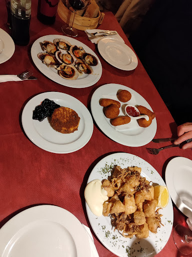 COMIDA: Calamares mucha cantidad y la calidad no era malísima pero tampoco de la ría. Con una fuente grande te ponen un pegote de mayonesa en un lado de la fuente, que ni alioli ponen. Las Zamburiñas, varias venían despegadas de la concha, vete a saber si eran congeladas y reaprovecharon las conchas de otras. Las setas un plato básico y escaso. Y LA PICANHA ERA DE TODO MENOS PICANHA. Y poco hecha[la picaña no puede quedar blanca por fuera] Los pimientos de piquillo rellenos de bote, alguno conservaba el agüilla,...