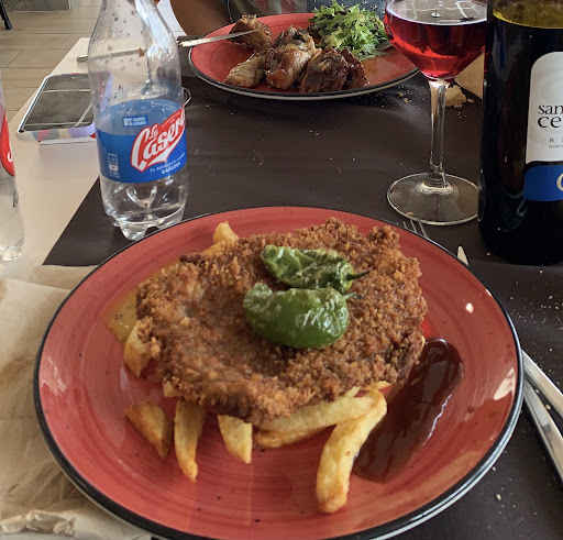 Read moreContaré mi experiencia... Los menús son variados con 5 primeros y 5 segundos Todos suenan muy bien incluso el de mi suegro que pidió un cocido era abundante y de segundo una chuleta que se la han pasado como una zapatilla (pidiéndola poco hecha)(lo mismo ,mi suegra) Las ensaladas bien presentadas pero demasiado dulces (se han pasado con el balsámico (pero eso ya son gustos). En mi caso, he pedido de primero fajitas de pollo con un toque picante ,y estaba buena... Pero crei leer en la carta fajitas (plural) , solo había una (que estaba rica eso sí). De segundo me he pedido una lubina que estaba completamente cruda, no se despegaba de la espina... Sin problemas solicito que me la calienten más ,eso si...muy escasa de guarnición (me pidieron perdón, no hacía falta, no me ofendo) y de postre un yogur con un sobado borracho en whisky que estaba bastante decente. 22 euros por adulto, yo me quede con hambre. Igual elegí mal, si volviese, pediría el cocido con costilla. Pero lo que he pedido... 4 sobre 10 de nota le doy