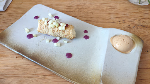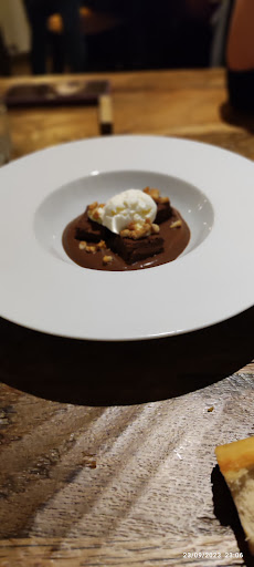 Read moreMi mujer y yo fuimos a cenar porque lo teníamos Justo enfrente del hotel y no queríamos coger el coche. Comimos cosas que no sueles comer. Unas vieiras a la plancha con espuma de azafrán; media ración de papardelle de setas de cardo con algo más q no recuerdo; media tosta de pimientos asados con burrata, anguila ahumada y algo más; media ración de risotto negro con sepia y alioli; y lechazo deshuesado cocinado de una manera especial (este fue el único q nos pareció q estaba un poco seco), y de postre, una tarta de queso que es de las mejores que hemos probado en nuestra vida. En general comimos muy bien. Los camareros fueron muy agradables, atentos, y nos aconsejaron muy bien. Creo que es un sitio al que merece la pena ir, por calidad de la comida, por lo a gusto que se está, y porque la relación calidad-precio es bastante buena (además de lo que he comentado, pedimos una botella de vino, y salimos a 76€ los dos)....