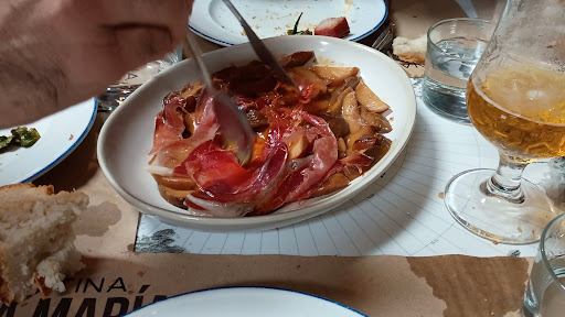 Read moreDespués de una lluviosa y gris mañana de invierno pateando por la montaña palentina, decidimos intentar picar algo para dar oportunidad a la climatología de mejorar, para dar otro paseo de tarde. Entramos a Salinas de Pisuerga y la sorpresa fue dar con La Taberna La María, la portada de la casa ya nos dio una buena impresión, típica de una buena taberna, seguramente. Fue entrar y pensar que no tendríamos oportunidad, gente en la barra y mesas ocupadas, pero amablemente nos dieron la posibilidad de ocupar un espacio en la barra mientras esperábamos tomando una cerveza. Un servicio estupendo, una comida impresionante y un gran ambiente tabernero. Comimos una estupenda paella de marisco, acompañada de una rica ensalada de trucha ahumada y un espectacular postre. A partir de ahora será uno de nuestros lugares fijos antes o después de patear...