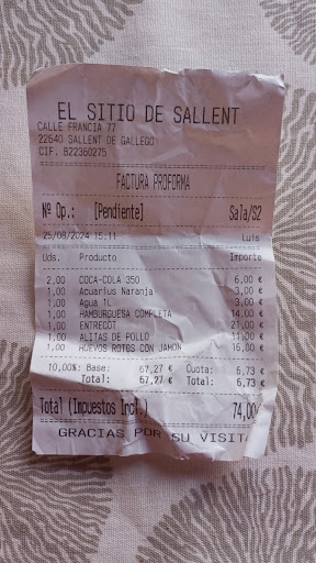 Por otro lado las medidas anti covid , solo de cara a la galería, donde los dos chavales que están en barra son los únicos que llevan la mascarilla, porque un señor canoso delgado, que debía ser el jefe se pasea por dentro de la barra poniendo copas sin mascarilla, y lo que es aún peor, en cocina también sin ella, al igual que el otro cocinero que la llevaba debajo de la barbilla. En definitiva hay mejores opciones en Sallent para poder comer, porque además la comida ha perdido calidad y presencia respecto a otros años. No es...
