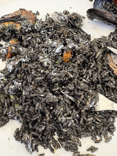 De PRIMERO pedimos arroz negro y espagueti carbonara. Sin embargo no tenían arroz negro, con lo que opté por pedir paella.