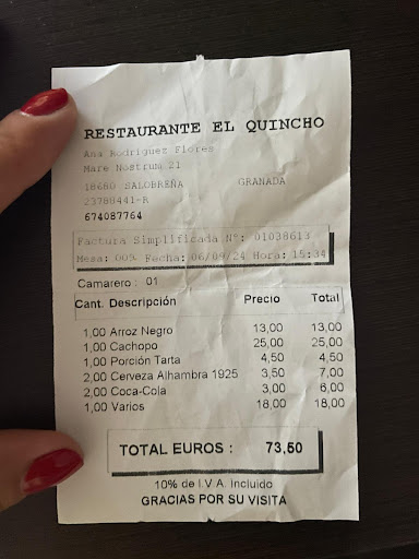 Llega la sorpresa con la cuenta. Y es que donde debía poner 38,50€ vienen 73,50€... ¿?