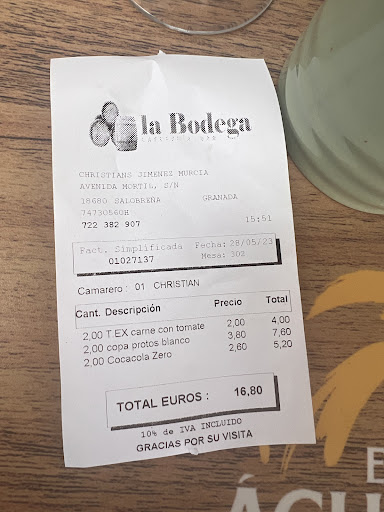 Quite simply put, "La Bodega" is one of the the best, if not the best, restaurant in Salobreña. The food is typical Andalucian cuisine, skilfully prepared and presented by attentive and hard-working staff. The Chateaubriand is exquisite here and served to your liking; as is the Monkfish - skewered on a mini-sword with prawns - just to rave about two of the excellent dishes on offer. In Andalucian style your drinks are served with a tapa, and here you can guarantee they will whet your appetite splendidly.