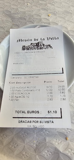 Read moreThe new location of Mesón de la Villa is a perfect place to enjoy a night out. Calle Guardalfeo is a small pedestrian lane with several bars and restaurants within 40m of each other and the place is always buzzing with people enjoying there alfresco activities. Inside Mesón de la Villa is a tradition Spanish restaurant with a good menu and a...
