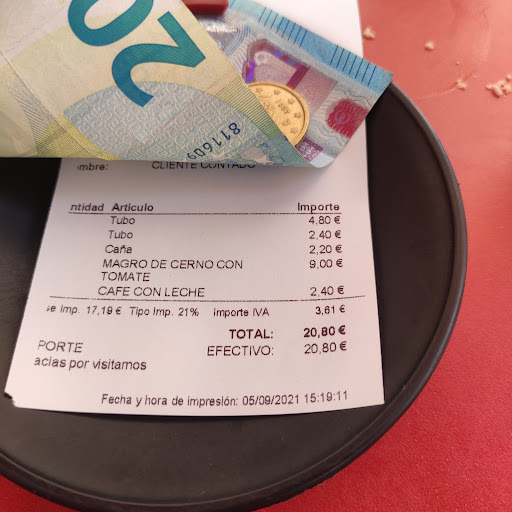 Read moreCreo k hubo un mal entendido con la chica k nos atendio, me explico, pedimos las bebidas y nos pregunto si keriamos algo d tapa, le respondimos preguntandole k tenian, nos dijo k estaba en la pizarra, al ver k habia tan pocas cosas pedimos ensaladilla, pagamos y nos fuimos. Ahora viendo la reseñas creo k esas tapas eran con las bebidas y luego aparte tendran mas cosas, creo yo. La proxima k vaya por alli d vacaciones, me pasare para enterarme bien d lo k tienen y espero k ese dia tengan cervezan syn gluten y mas tapas sin gluten,...