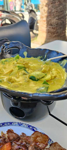 I'm so sad that I did not like the only Asian restaurant in town😒 first the service was not good,we did ask for a table outside and ye it was fine. We did wait for ordering drinks for about 15 minutes so that was not nice..but we did order and the food came in parts not all together as when would have liked but the food was so bad 😔..sorry I'm just wondering how everyone can say it is good...we have travel to many places and eat a Chinese food around the world...and we'll I don't know what that was. The rice where to sticky and more like sushi rice, the spring rolls where what to big to call it spring role..more like rapper ..and just filling was cabege and meat but almost no meat just cabege.the shrimp pure was over fridge and hard like the floor and the meat in Oster souse was flaverless but salty and lot of clumps with starge..the green curry was yellow curry and just salty ..and flaverless unfortunately. We did pay everything as we did order..but we when the waiters ask us if we like to take the food we said no thank you,and then they asked why and we did tell them about that we just didn't like the food,it just was bad. Sorry.. Not in bad manners..just as it is. Anyway not my style of Chinese food......