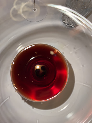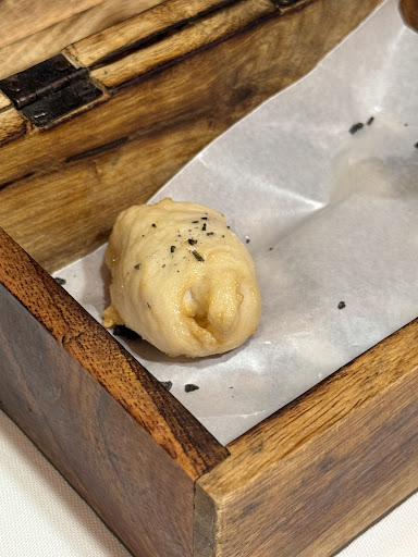 Service was excellent throughout. Our main waitress and sommelier both did a fantastic job explaining the food, wines and stories, in spite of the language barrier and wearing muffling face masks. At one point everyone ate the same dish, accompanied by a speech from one of the waiters and playing of the Can Can, which is from the Offenbach opera of Orpheus. Bonkers.