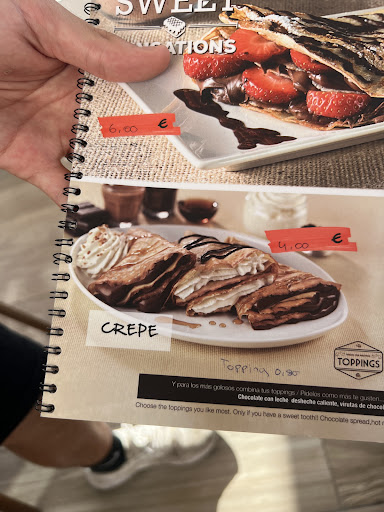 Furthermore, the menu at Farggi Salou is not entirely transparent in terms of costs. To provide an example, we ordered a chocolate crepe listed at 4€, but were surprised to see an additional charge of 0.8€ for the chocolate topping on the final bill. These inconsistencies create a sense of uncertainty and can be a potential source of dissatisfaction...