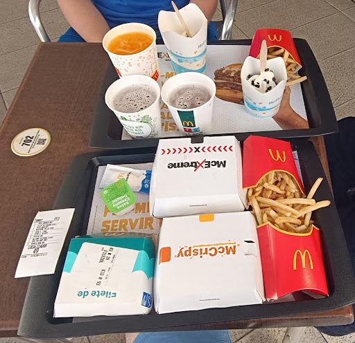 Usual new ordering technology at this McDonald's. But 1 machine was down and it was busy. Still managed to order quite quickly and pay cash and collect within 5 minutes. Air con beautiful and cold. Quite a long and narrow seating area inside and a bit crowded. Very, very noisy. More seating area at the side, under a canopy but not air conditioned obviously. Food to usual McDonald's standards. Oreo mcflurry gorgeous! Ladies toilets disgustingly dirty at the time. 1 cubicle with no lock on the door. Both male and female toilets very small due to layout of the building. Insufficient size for the number of visitors. Seem to be too few staff to do too many jobs. Staff...