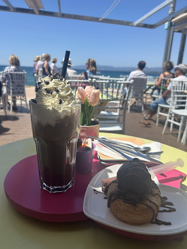 Nice sweet treats in a nice location with a sea view 🌊 The restaurant is decorated aesthetically, and food & drinks are presented very uniquely too! 🩷Staff seemed nice but not much interaction & service to get the bill was quite slow. Lots to choose from on the menu, both sweet and savoury. If we were to come back we would definitely get something savoury and share a dessert as it can be quite sickly. Good value for what you get & portion sizes are...