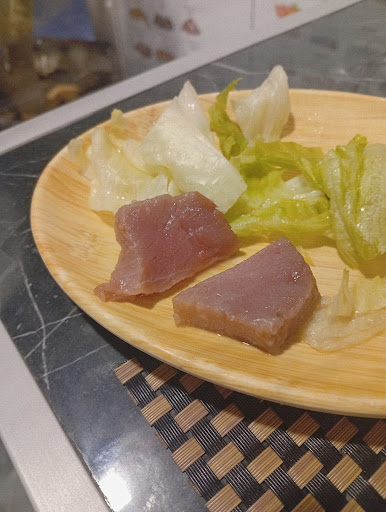 While we were seated the aforementioned pungent gentleman said we could order up to twenty plates per order (and as many times as we liked) which were brought by the robot to the table. Some items ordered never arrived which was fine as there were multiple items placed on each order. As told by the server any dishes we had finished with were to be placed on the robot once our fresh ones arrived. We tried each dish when they were delivered to our table and obviously every persons tastes differs so we placed any dishes we didn’t like back on the robot only to have them brought back by the gentleman who seated us. We received dirty looks and several scoffs throughout our time in the restaurant which in itself was enough of an indicator not to return.