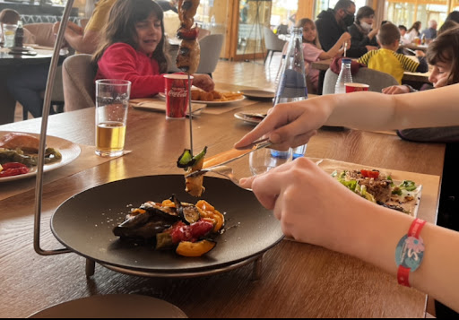 Read moreDe dos comidas hechas podemos decir que un poco de todo. La brasa muy buena, las ensaladas con buena presentación però muy pobres ( un mezclum vale céntimos ). En cuanto al servicio la clave está en la persona que había al frente. En una comida muy bien atendidos y en la que hicimos el lunes 11 de abril al mediodía….. pedimos dentro porque el dia era algo frío a la 13.00 (con 5 mesas para elegir) y elegimos una que quedaba entrando de la piscina a la derecha pq estaba resguardada y … sorpresa! el jefe de camareros nos espeta que nonos quitemos chaqueta porqué abrirán puertas laterales por dia “ caluroso”…. Y sí que abrieron pero 10’ después de abrir la mesa enfrente a la nuestra pidió a una camarera muy amable que por favor cerrasen la puerta ya que los niños tenían frio y la cerró. Fuimos los olvidados del rincón. esperamos 30’ para que alguien viniera a pedirnos los postres…. Dos experiencias marcadas por la persona al mando...