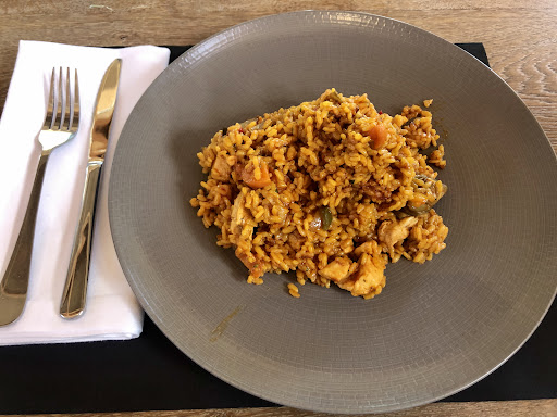 We had dinner at Sanguli's Africa restaurant on the 21st of May 2017. Overall, a very nice experience. The venue is beautiful, the furniture is amazing and the restaurant looks very sophisticated and chique, while the food is moderately priced. We had the seafood paella, which was served on plates by the table. It tastes amazing! We also had entrecote, which was cooked on the outside grill, giving it that real BBQ taste! The vegetables and potato on the plate could have been more refined, though. For dessert, we had the Crema Catalana which was just perfect. The waiters were all very kind. We would like to have been given some bread in the beginning of the evening while we were waiting for our dishes to come. But that is just a small detail of course. Just like the music, which we found to be a bit too boring and repetitive. In general, our experience was very good, and we would love to come...