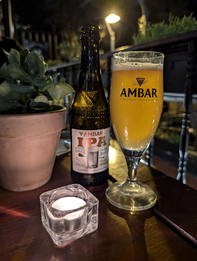 There was a great selection of drinks available and up to 9pm you can order a bucket of 5 beers for 10 Euro. I drank the Ambar IPA which was a tasty beer and cost 4.90 Euro - fair price for a decent beer.