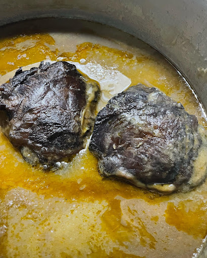 Menos tradicional pero igualmente esquisito, les carrilleres de Wagyu, trayíes de la Finca Santa Rosalía y preparaes al puntu, con abondosa y saborgosa salsa, pa rellambese... y pa repetir.