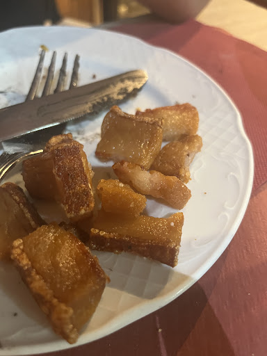 We reserved in the same day to this restaurant for the good reviews, but I was soonest disappointed..I think the place place doesn’t look as the picture at all, and we personally didn’t like the food either for the price is sold for..also, the menu online isn’t the one you’ll be given there. They had some fresh fish and meat of the day, but definitely overpriced, so we went with things in their current menu: although croqueta de sepia was ok, torreznos were mostly fat basically no meat at all and overcooked. the carne a la piedra which we went purposely for, was nothing as the quality we expected, quite standard not very tender..finally patatas alioli boiled, we should have perhaps asked for baked which is usually what s served..you get charged for bread service, and on a total bill of hundred euro (as we got wine and other drinks with our meal) don’t expect the classic spanish treatment of a free ‘chupito’, we got to pay 8€ for crema de orujo. The staff working there was rather tough with us, don’t really get why, so we didn’t leave tips, and...