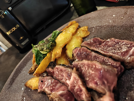 Todos super buenos pero el steak tartar y las bravas espectaculares Luego dos chuletones a la brasa (la brasa la dominan totalmente),uno de la variedad de Jersey y la otra no recuerdo Presentadas antes de cocinarlas . La carne brutal ,en el punto que queríamos , super tierna y con la maduración perfecta . Tres postres para compartir ,culant ,tiramisú y helado de calabaza,y chocolate todos buenos pero el helado de calabaza brutal . Cómo os digo la comida de mucha calidad ,pero destacar el servicio pese a ser gente muy joven son muy profesionales y bien dirigidos por el responsable un señor con coleta que nos atendió super bien y estando.muy pendiente de todo . Éramos 5 personas con la comida descrita y un montón de bebidas (cervezas ,refrescos ,sangría aguas cafés )190 €,super bien de precio para la calidad y la cantidad Era nuestra primera vez y repetiremos seguro ,a la próxima probaremos los arroces que pasaban a otras mesas y tenían muy buena...