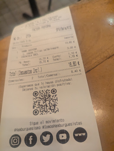 Read moreI ordered 'The Lazy Girl' - can't remember the Spanish name. The waitress asked how I'd like it done and I said 'well done'. I took two bites of the burger and noticed something wasn't right. The meat was cooked on the outside but pink on the inside. I brought it to the waitress and she mentioned that the kitchen was closed so I asked for nachos instead and to be honest, I didn't feel like eating meat and didn't really want to kick off. Anyway, bill arrives and I'm charged for the burger even though it wasn't what I requested when asked. Fair enough, I ate the chips but that's a lot of money for meat-free tacos and chips. Wish I'd taken a photo of the burger. Also, getting charged 7% for average service and the wrong food?! Avoid...