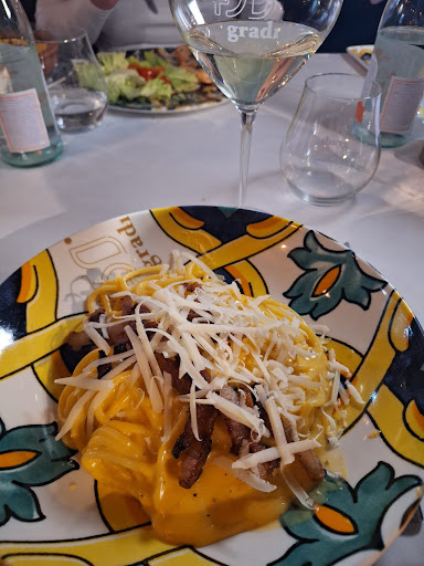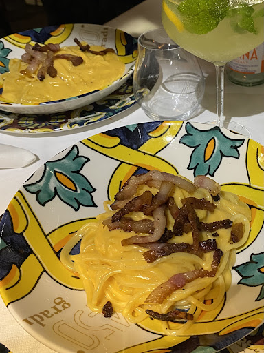 I had pasta carbonara which I usually love and this was supposed to be made the authentic way with egg yolk. Sadly the dish had not even seen an egg yolk, the whole dish was soaked in cheese sauce which tasted nothing but ready cheddar spread from a can. The combination with this cheddar sauce and greasy bacon was so heavy. I could not finish even half of the dish. I asked the waitor if the pasta has cheddar cheese and he denied, but told me that in his opinion the carbonara is the worst dish on their menu and I should have taken sea food instead 😅 They offered me a dessert free from the house which was appreciated. Tiramisu tasted home made.