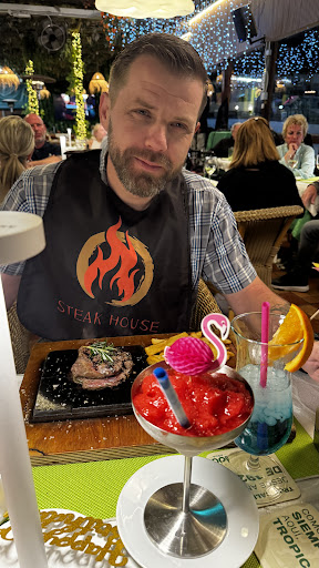 We came to this restaurant a few times while we stayed in Playa del ingles, I cant recommend it enough,the staff are great. The steak on hot stones I can not recommend enough it was delicious, cook it the way you like. Me and my partner enjoyed it that much we totally forgot about our drinks.
