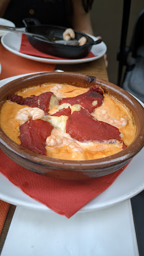Then ordered Gambas al ajillo, Pimientos rellenos de bacalao (very creamy) typical Canarian Papas (potatoes) arrugadas (with red mojo) & abuelas Albóndigas.