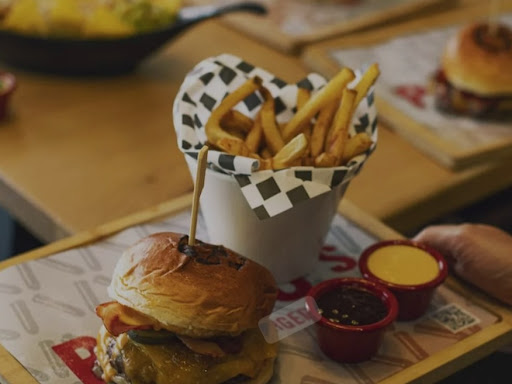 Read moreEmpiezo por lo único bueno, personal simpático, buen ambiente, curiosa decoración y buena música. Por lo demás, nada bueno. Pedimos para picar unos trozos de pollo frito con rebozado crunchi, que el crunchi no tenía, era más bien un empanado de harina fino. Luego nos ponen unos cuenquitos minusculos de papas fritas, que para lo caro que son, podrían ser un poco más grandes. Pero lo peor fue que las papas estaban refritas y grasientas, no se podían comer. Se las devolvimos, nos trajeron otro mejor y no las cobraron. Luego las hamburguesas, unas smash que de 170g no tenían ni de coña, son muy pequeñas para unos 16€ que salen, de locos. Pero es más, vinieron super pasada y seca la carne. Conclusión, nos gastamos una pasta en unas hamburguesas que no valen la pena y salimos muy desilusionados con el local nuevo. No volveremos. Es más, preferiría ir a Burguer King que...