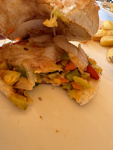 Read more2 stars for the food, we ordered vegetarian burgers with fries. One star is for ‘originality’ - I’ve never seen anything like it! This was literally some chopped vegetables fried and then very loosely shaped. Very loosely, just look at the thing and it fell apart. So the other star is for ‘sense of humour’, well we laughed anyway, it seemed like the best option. And I have to add that we ate it, it wasn’t inedible and we were very hungry - adding ketchup and mustard helped. The waiter was friendly and pleasant, the place was quiet so service was quick, the atmosphere was relaxed and the...