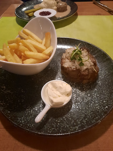 El menú abarca desde clásicos nórdicos como la sopa cremosa de salmón y las albóndigas finlandesas, hasta creaciones contemporáneas como el entrecot a la pimienta y las hamburguesas 🍔 gourmet, cada una preparada con ingredientes frescos y un toque innovador. La carta también incluye opciones para compartir y platos pensados para familias, lo que hace de Kuparipannu un lugar ideal tanto para celebraciones especiales como para encuentros más informales.