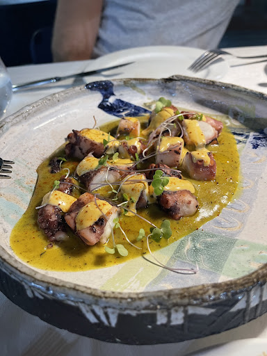 Read moreThe service (at first) and fish dishes (sea bass, octopus, fish croquettes) were fantastic. However, one of the dishes, creamy rice with shrimps and mushrooms, had a really watery and bland taste, and the mushrooms had a bad side taste. All five of us tried it, and found it bad. We couldn't finish it, and the waitress asked us how it was. We explained politely that we found the taste strange. What happened next was why I'm writing this review. She somehow got offended, and decided not to serve us after that. We were considering still ordering desserts, but as we didn't get her attention we decided to take the bill. It was weird that we were treated this way, as we simply gave feedback about the food, and nothing personal about her or any of the staff obviously. We felt very disappointed. Obviously giving negative feedback is not something enjoyable, and you don't expect the receiver to make you feel bad for giving it, especially in a five star restaurant. Also the steak we ordered as medium minus was well done (cooked through) and wasnt good. Go for the fish if you...