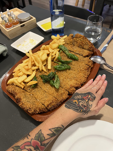 Read moreEl sábado fuimos mi pareja y yo por primera vez. Teníamos antojo por probar un cachopo y al ver las reseñas y fotos nos decidimos a ir. Tengo que destacar la atención por parte de David, el dueño. David y el camarero han sido muy amables y atentos en todo momento. Al ser nuestra primera vez, nos explicaron todo lo que había en la carta y fuera de carta también. Quisimos pedir 3 entrantes y un cachopo para compartir y David nos recomendó pedir solo dos, ya que el cachopo es bastante grande. Menos mal hicimos caso. Nos pusieron pan con aceite de oliva virgen extra nr3 Elizondo y nos recomendaron la sal marina virgen macerada con chile fantasma de la empresa canaria pepeoil, ya que nos encanta el picante, esta combinación nos pareció exquisita. También pedimos pimientos al padrón y gambas al ajillo. Muy muy rico todo. Cuando vino el plato estrella alucinamos con el tamaño, pero nos ofrecieron envase para llevar, ya que apenas pudimos con un tercio del cachopo. No sacamos foto de la cuenta, pero nos pareció muy razonable teniendo en cuenta la calidad y la experiencia en general. Pedimos una caña estrella galicia de grifo, dos botellas de agua sin gas, servicio de dos panes con aceite Elizondo, media de pimientos, gambas al ajillo, el cachopo y el envase para llevar. Todo aproximadamente 52€ Local reformado, pequeño, bien iluminado, muy limipio y decoración muy bonita. Nos sentimos muy agusto y te hacen sentir parte de la familia. Queremos volver y probar el pescado y los arroces. Recomiendo reservar ya que el local es pequeño, nosotros...